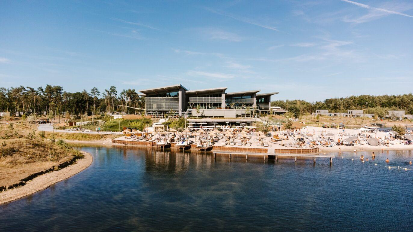 Terland Beach is de enige plek aan het meer van Terhills waar je mag zwemmen. Redders houden een oogje in ’t zeil.